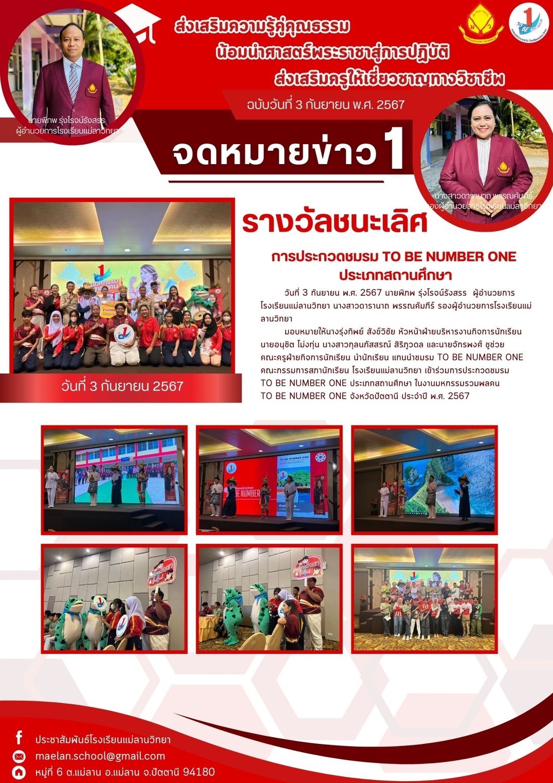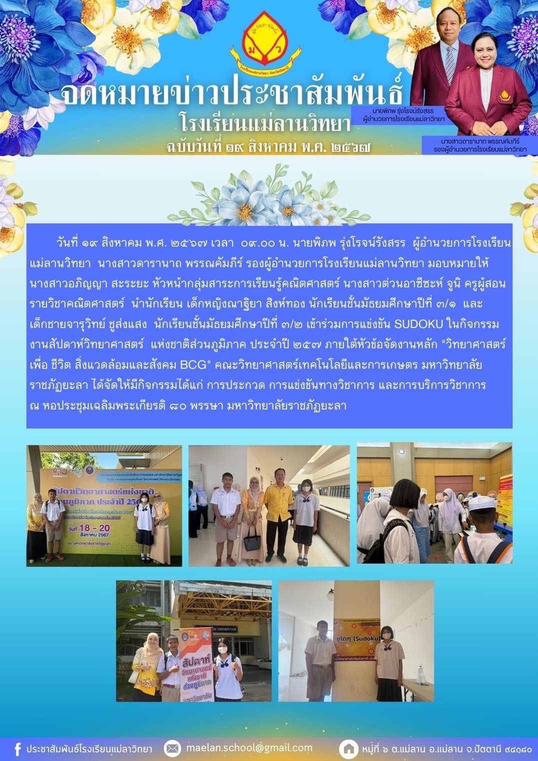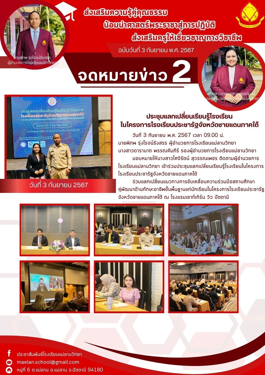 นายพิภพ รุ่งโรจน์รังสรร ผู้อำนวยการโรงเรียนแม่ลานวิทยา นางสาวดารานาถ พรรณคัมภีร์ รองผู้อำนวยการโรงเรียนแม่ลานวิทยา พร้อมด้วยคณะครู บุคลากร และนักเรียนโรงเรียนแม่ลานวิทยาจัดกิจกรรมหว่านกล้านาโรงเรียนแม่ลานวิทยา ประจำปีการศึกษา 2567 ณ แปลงหว่านกล้า โรงเรียนแม่ลานวิทยา